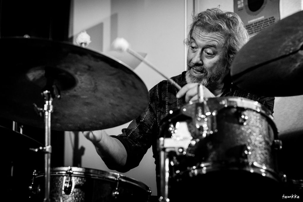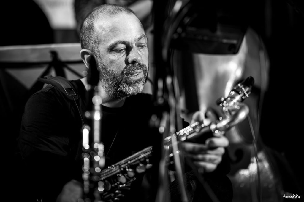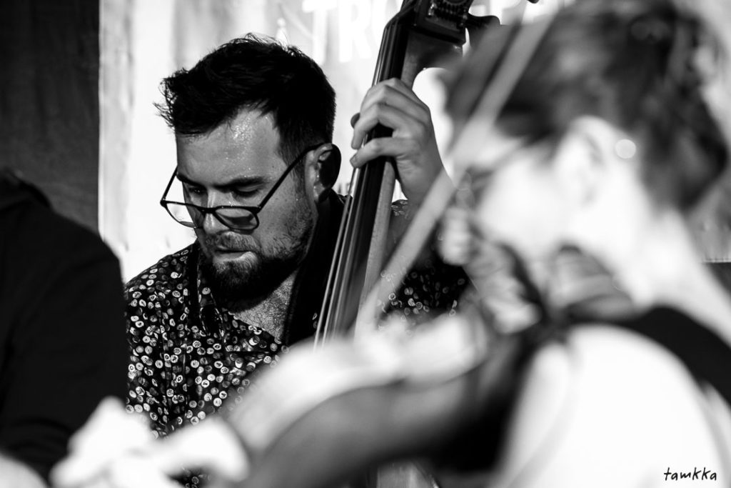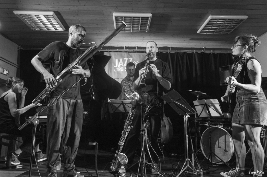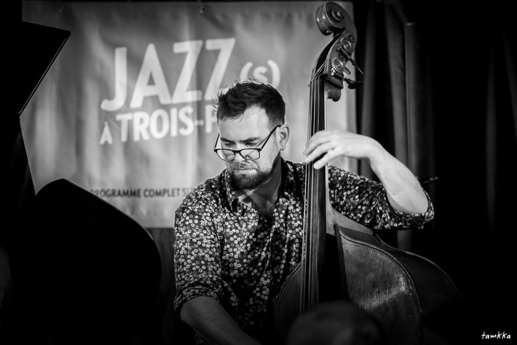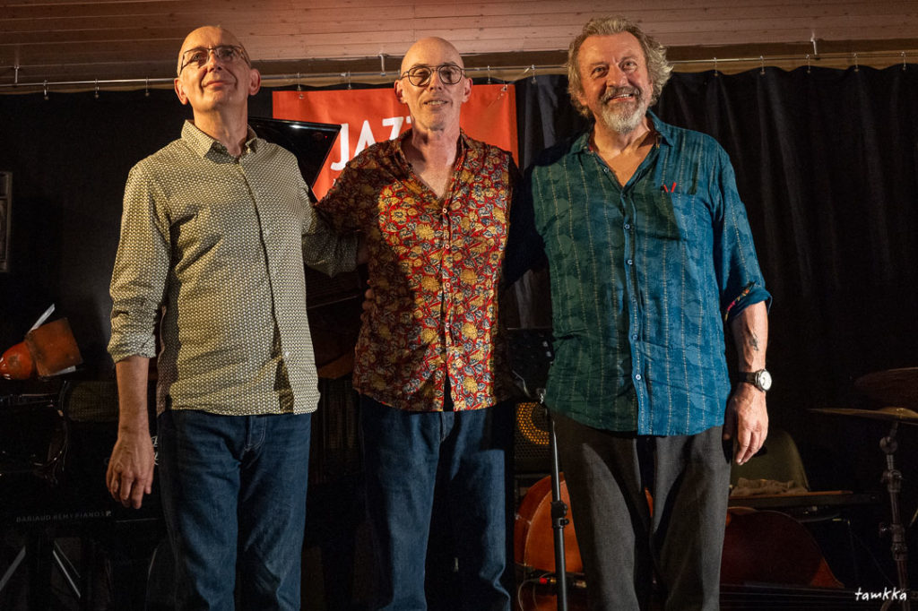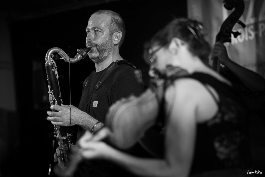 Quatre notes, et le clavier de Didier danse déjà. Les mains sur la batterie pour Christophe, c’est physique le tango de Drôles d’oiseaux, mais la jambe s’attarde, suspendue pour mieux multiplier ses circonvolutions dans les doigts habiles de Didier Fréboeuf. Tourbillons, déhanchés improbables, le tango brille, tourne et retourne, pas assurés de la contrebasse de Guillaume Souriau qui prend ensuite la main pour poursuivre la chorégraphie.
