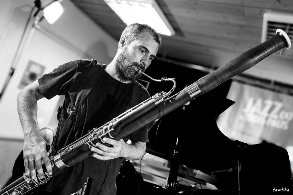 En Echo, un commencement métallique pour le violon et la clarinette basse, le basson de Nicolas Mary allonge ses sons, la contrebasse de Michel Molines swingue lentement, le piano incruste sa gestuelle contemporaine, presqu’en valse lente.