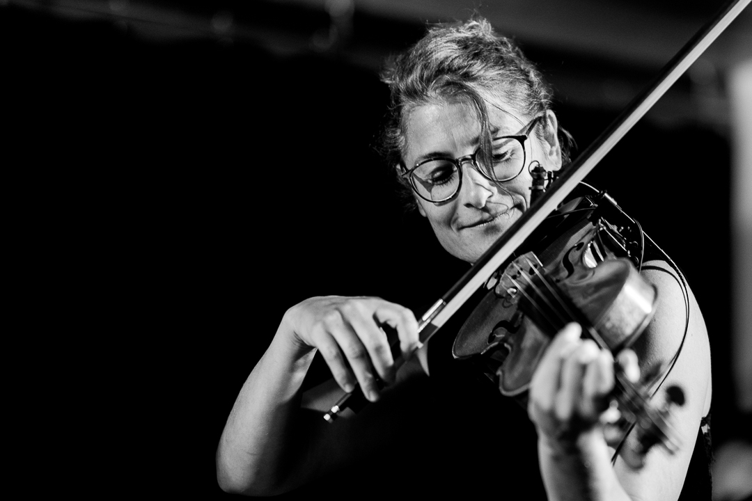 Bête et féroce est un morceau cahotant qui porte bien son titre, une musique intermittente…hachée, la batterie de Guilhem Meier en percussionne… Les compositions volontairement foutraques conduisent l’énergie de chacun. Le solo d’Anne Quillier se construit comme un millefeuille, des volutes superposées, peu à peu suivie par le violon suffoquant de Fany Fresard, le choix de la désarticulation pour une cacophonie mélodieuse. Le piano frémit parfois, bruisse. Tous se rejoignent pour haleter.