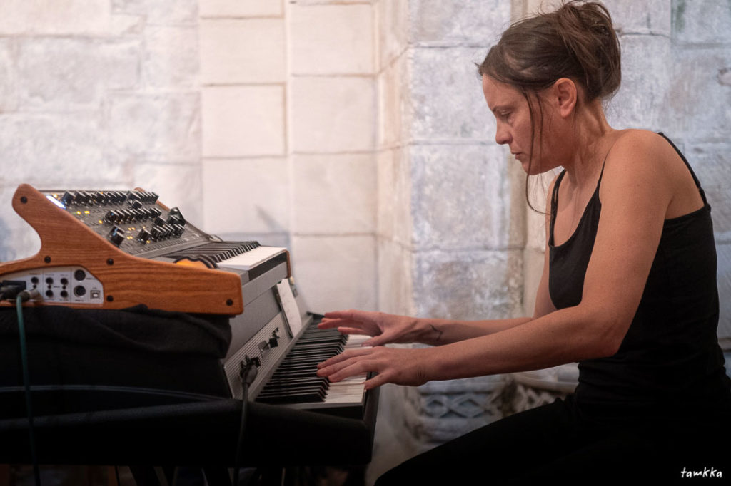 Des lasers psychédéliques ne cessent d’emplir l’église de Trois-Palis, un swing s’installe à la respiration en pointillé, une comptine s’en échappe, même si les jets métalliques rodent.