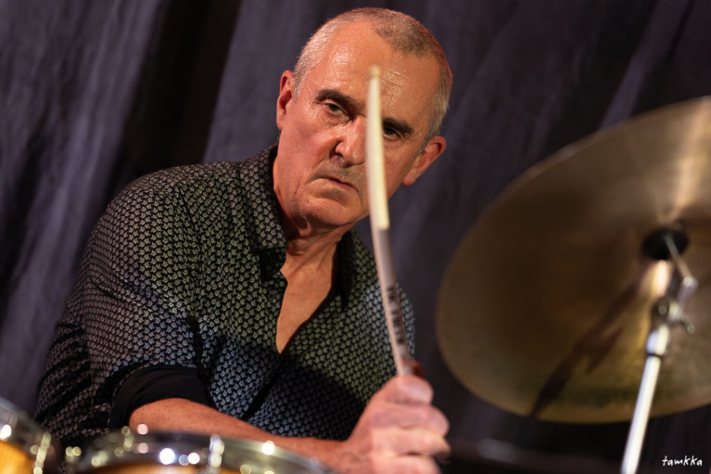 Longues répétitions d’accords appuyés, tous les musiciens en tension jusqu’aux salves des baguettes de Christophe Marguet afin que s’affirme un chorus solennel au violon. La batterie, elle, roule, un coup de cymbales vif donne le signal à l’apaisement, les instruments s’effilochent, se perdent au loin, résonnent lentement, un crépuscule rouge en déliquescence.
