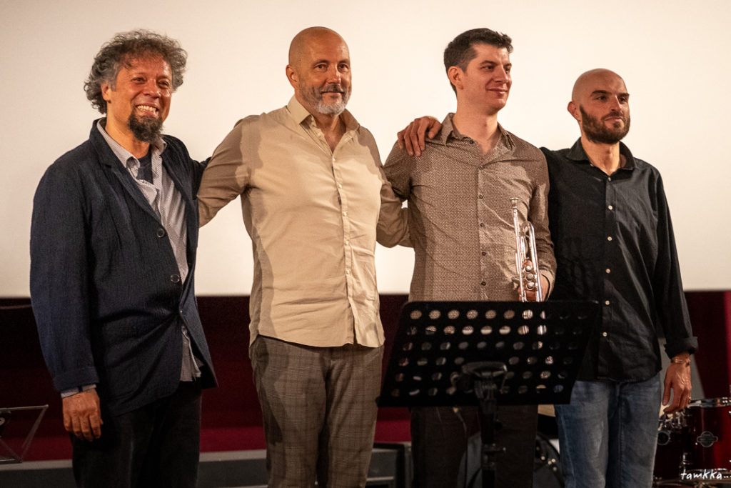 Le Cosimo Quartet est mené par Cosimo Boni, un trompettiste et compositeur italien, tombé à onze ans dans la marmite magique du jazz. Après s’être délecté des musiques de ses mentors Miles Davis, Ornette Coleman et Wayne Shorter, il est parti étudier à Boston au Berklee College of Music dont il est sorti brillamment diplômé. Ce séjour américain lui a permis de côtoyer de grands noms du jazz, notamment à Boston et New-York. Il s’est aussi produit en divers autres pays de la planète et le voilà aujourd’hui parmi nous, entouré de Giovanni Paolo Liguori (batterie), très ardent musicien de la scène italienne, et de Thomas Bercy (piano) et Olivier Gatto (contrebasse), deux figures majeures du jazz en Nouvelle-Aquitaine et même au-delà, le second étant d’ailleurs lui aussi un « ancien » du Berklee College of Music, ça fait donc un partout dans cette rencontre franco-italienne !