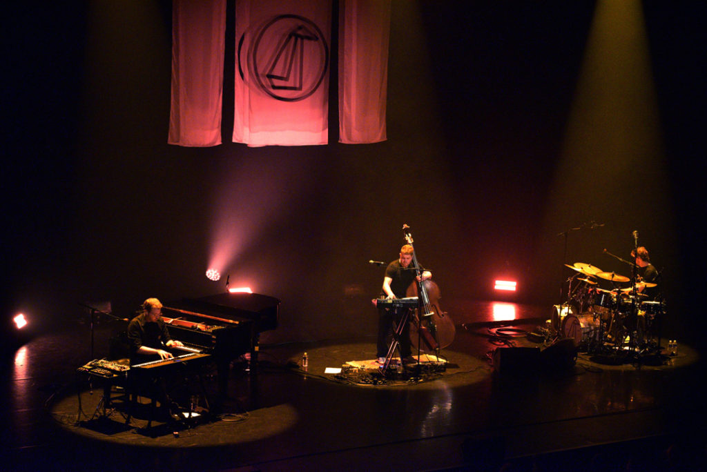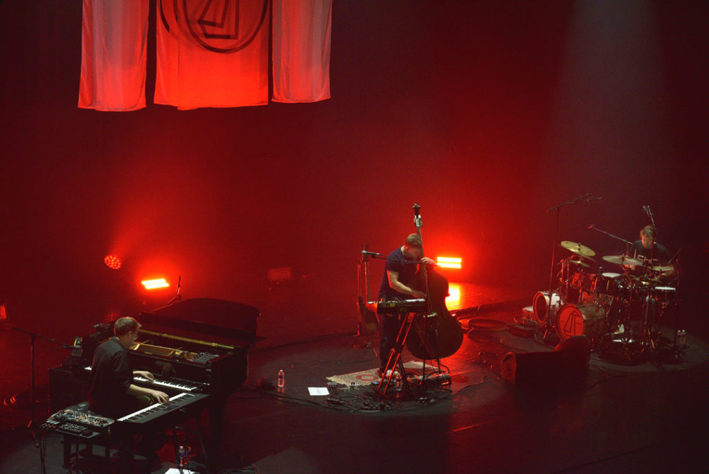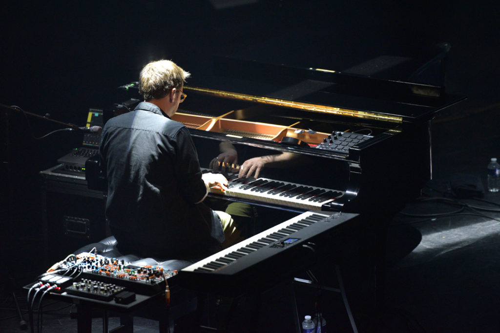 Les flashs lumineux sur la scène qui nous aveuglent participent à la mesure hypnotique. Epileptiques s’abstenir, ça accentuerait une crise. Le jeu du piano est fluorescent tout du long pendant que la batterie mitraille avec précision le morceau.