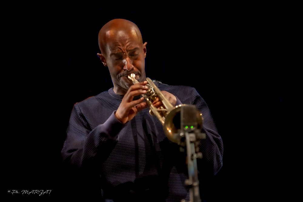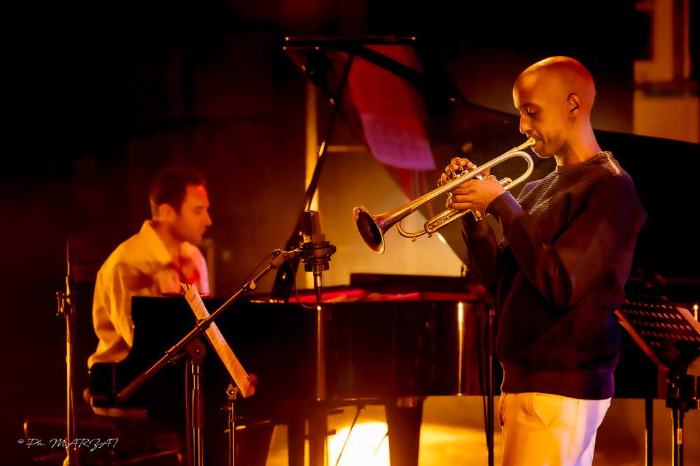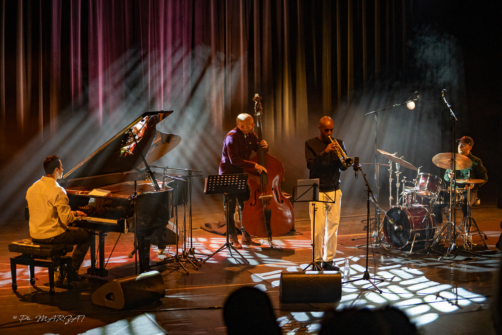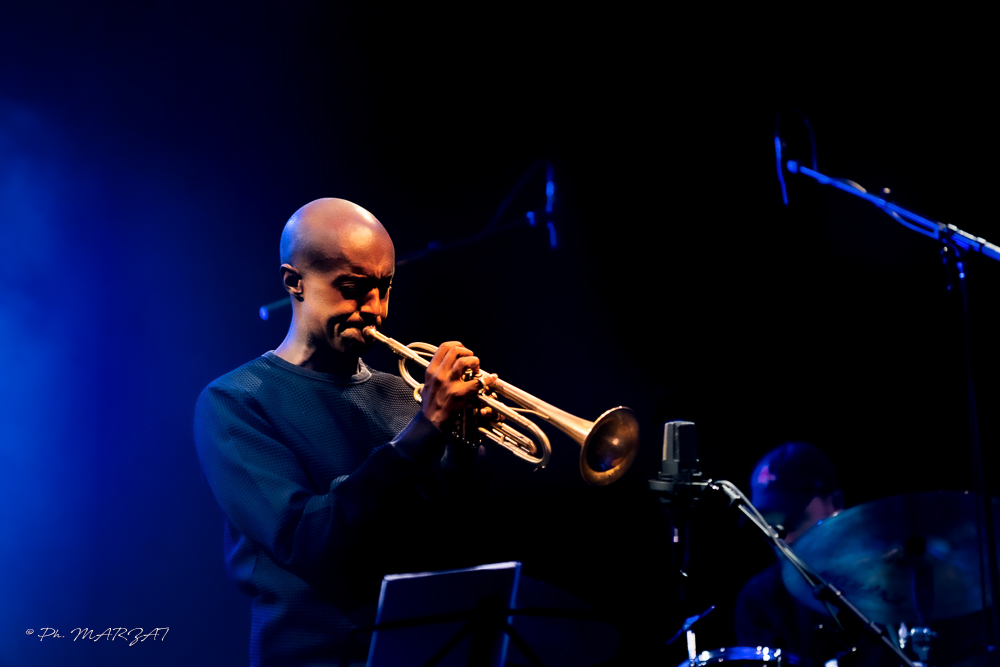 Le concert débute avec Atlantic Currents, une composition de Damien Varaillon, la fluidité mélodique se marie parfaitement à la pétulance de la rythmique, dessinant les courants tumultueux de l’Atlantique au creux desquels ce morceau a été écrit. La pureté du son de la trompette enveloppante, puissante et veloutée rappelle la profondeur du son franc d’Ambrose Akinmusire.