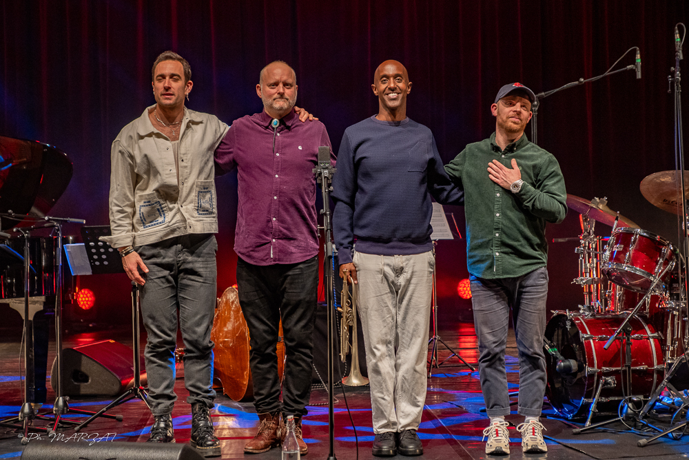 Le concert touche à sa fin, les musiciens interprètent ARC. Ce titre, issu de leur premier album, résonne comme une magnifique complainte sous la créativité des coulées déliées du pianiste. La trompette incisive d’Hermon Mehari habille de vibratos une mélodie légère et puissante. C’est cette richesse harmonique toute en nuances qui fait la force du projet, tout comme l’indéfectible complicité que l’on retrouve dans les improvisations et les solos de grande qualité dont nous gratifie le quartet.