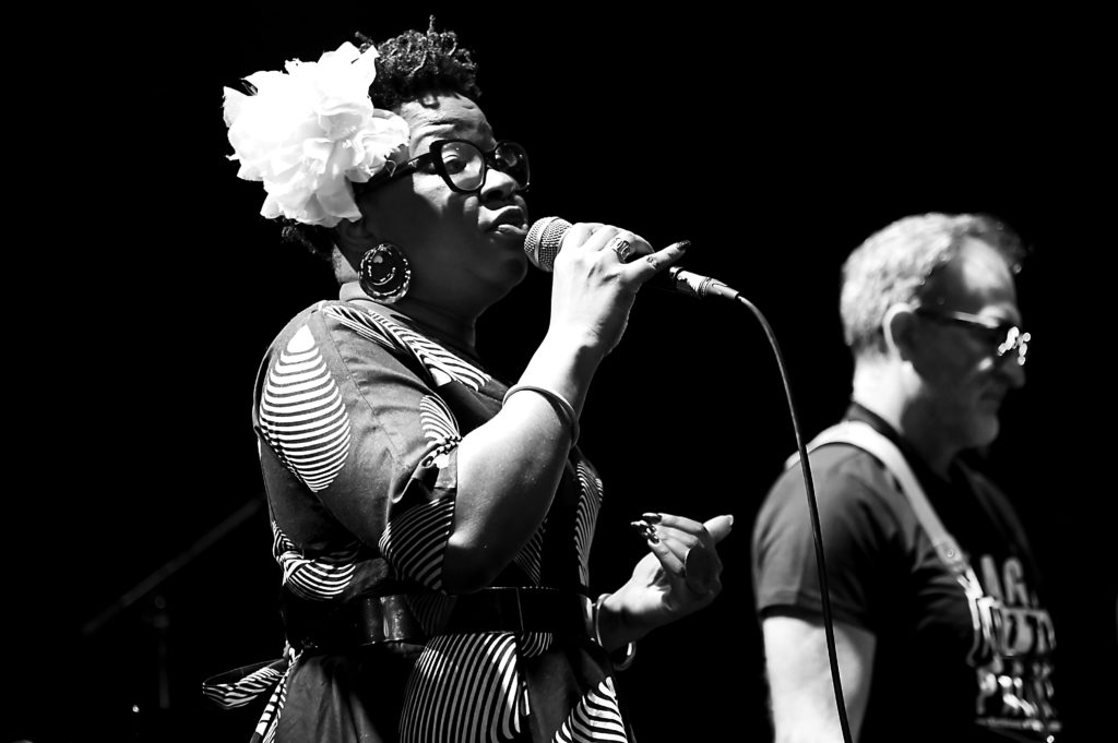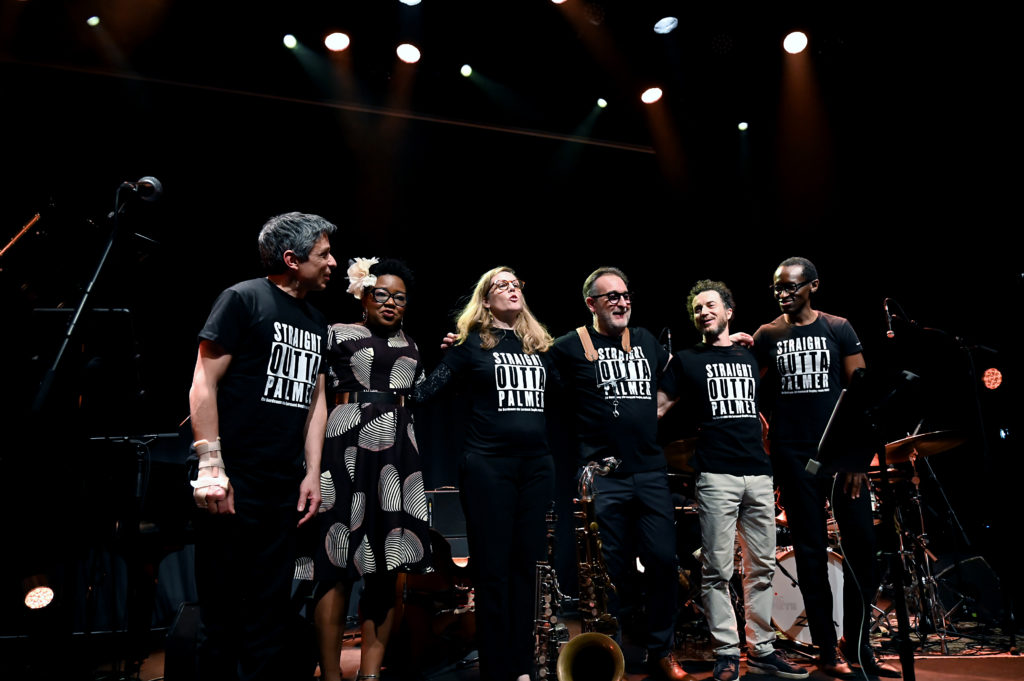 Rappel enthousiaste, et les voici remontant sur scène arborant le tee shirt ‟Straight Outta palmerˮ ! Et d’entamer un ‟Human Natureˮ en duo saxophone soprano et la trompette bouchée de Mickaël Chevalier en hommage au grand Miles ; le public retient son souffle…Mais ce n’est pas terminé, Monique Thomas de retour pour ce ‟Sunnyˮ où la chanteuse très en verve insuffle à ce standard un groove contagieux, le public reprenant le refrain « I love you », debout pour une fervente ovation bien méritée. Un très beau et grand moment de jazz ce soir…